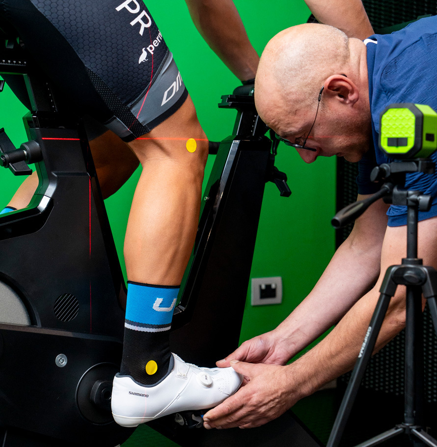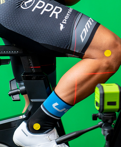 Dopo la disposizione di marker e dispositivi biometrici, effettuiamo una valutazione funzionale per identificare eventuali disallineamenti o debolezze, fornendo informazioni chiave per verificare la nuova postura e le nuove misure della bicicletta.